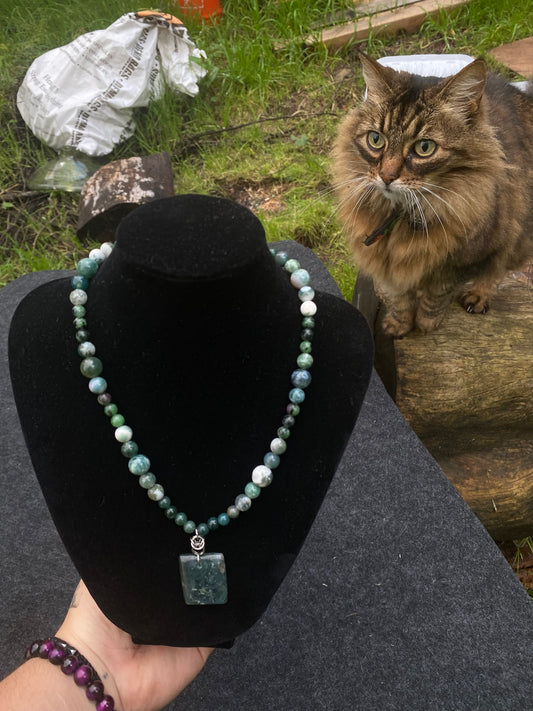 Chainmaile Moss Agate, Tree Agate & Ruby Zoizite Necklace