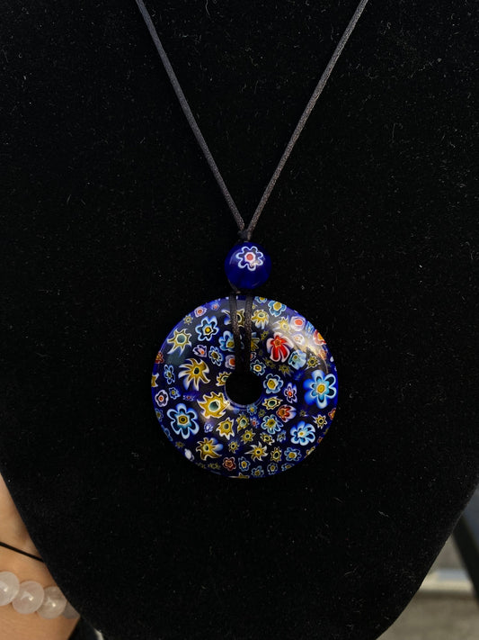 Simple Millefiori Lampwork Donut Pendant Necklace