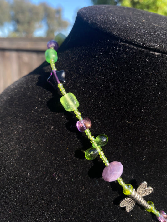 Dichroic glass & purple sea sediment imperial Jasper Necklace