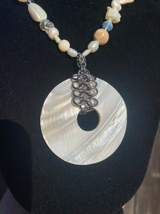 Chainmail Shell Neckalce with Pearls & Clear Quartz