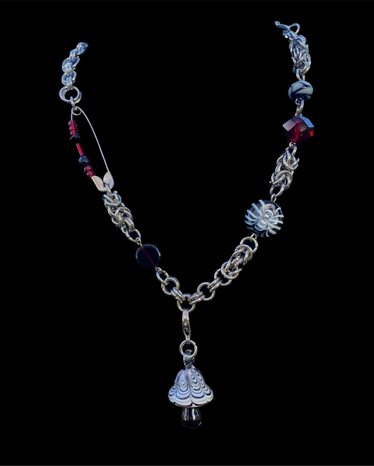 Red & Black Alternative Mushroom Chainmaile Necklace