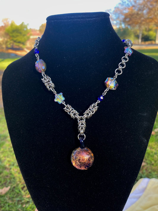 Dichroic Glass & Shiny Stars Alternative Chainmail Necklace