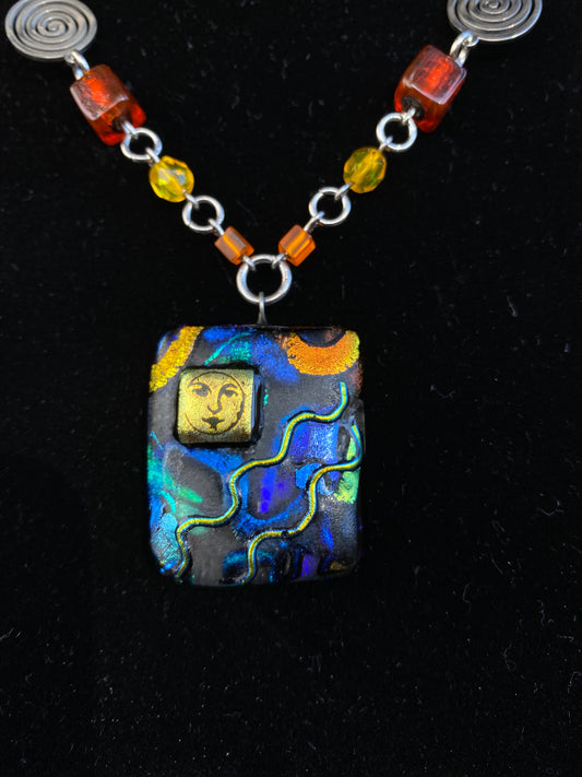 Sold outFlashy Dichroic Glass Moon Necklace