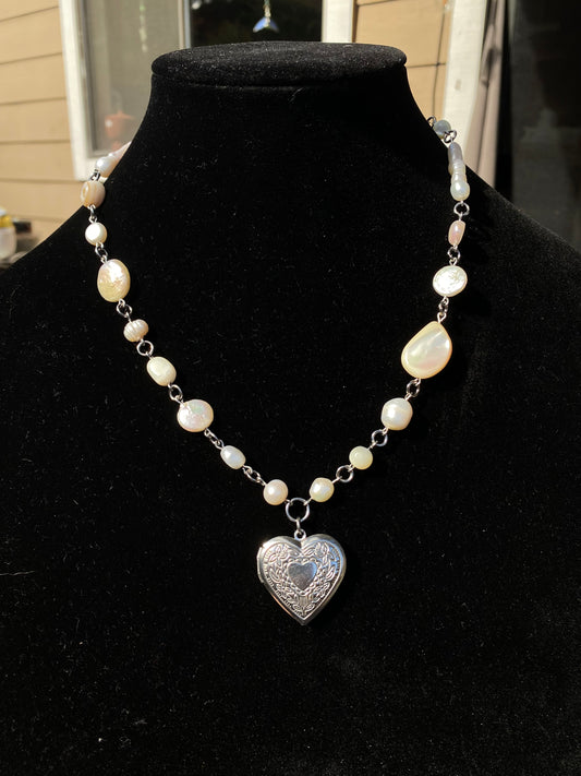 Freshwater Pearl & Shell Heart Locket Necklace