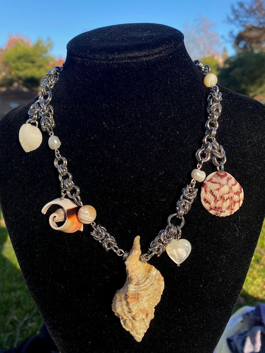 Shell & Pearl Alternative Chainmail Necklace