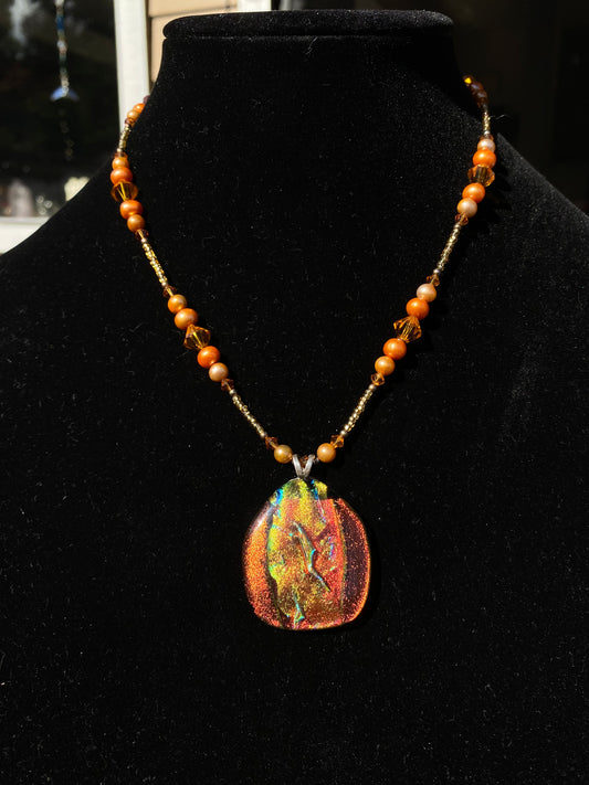 SH Dichroic Glass Fresh Water Pearl Orange Necklace