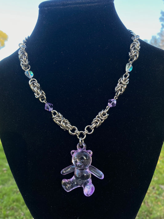 Purple Teddy Bear Chainmail Choker/Necklace