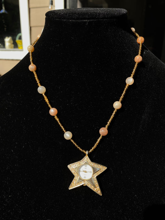 Sold outSunstone & Gold Star Watch Necklace