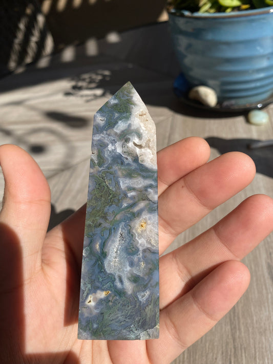 Sold outMoss Agate Tower with Druzy