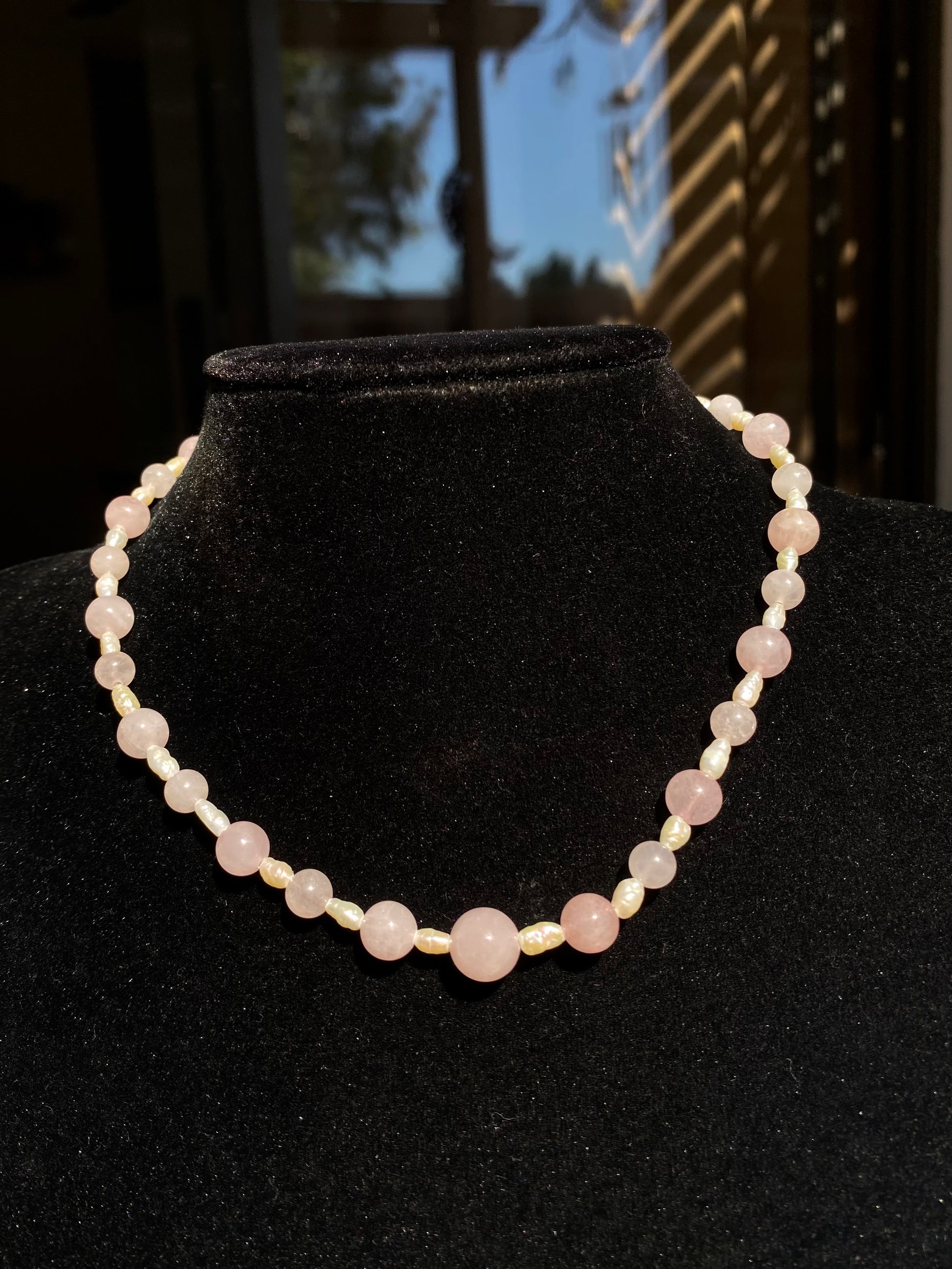 Rose Quartz & Genuine Rice Pearls Choker/Necklace