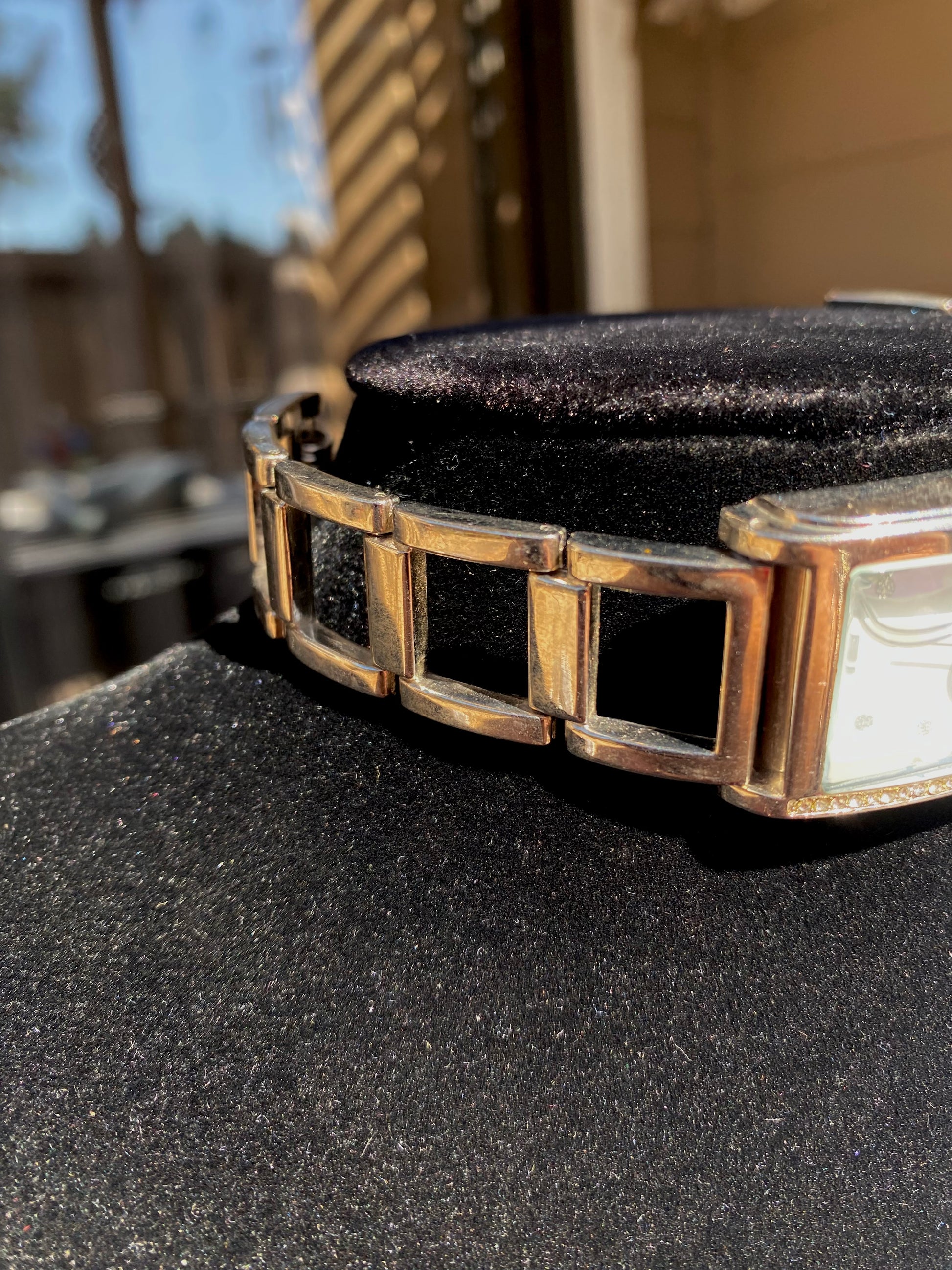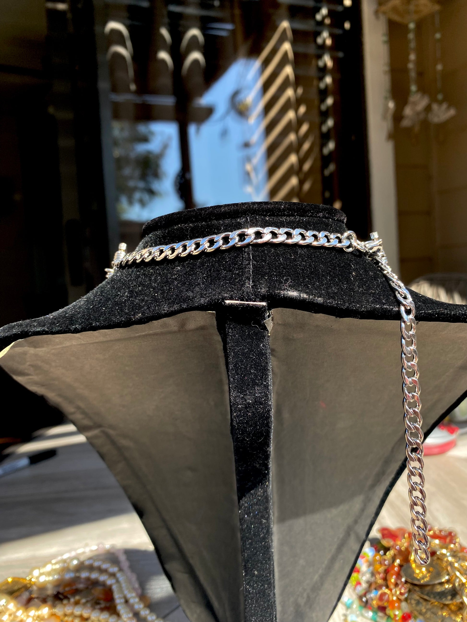 Only possible to wear as a choker. This style of watch does not sit as a regular necklace. Made with a secondhand old or vintage Avon watch. Finished with stainless steel jump rings, chain and closures.