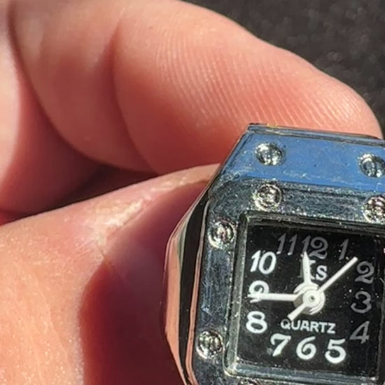 The coolest accessory to add to your jewelry collection! Ring Watches are something you don’t see everyday! An amazing unisex accessory bound to spark up conversation! Made of alloy and steel and plated with gold or silver tone. These have stretchy bands so they can fit most fingers! I’d say they start around us size 5-6 and can fit up to about 10 pretty comfortably. They stretch more but get tight.