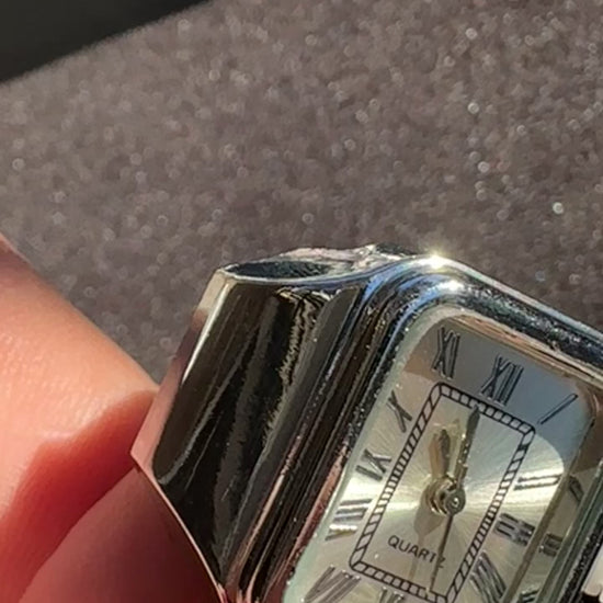 Rectangular Silver Ring Watch