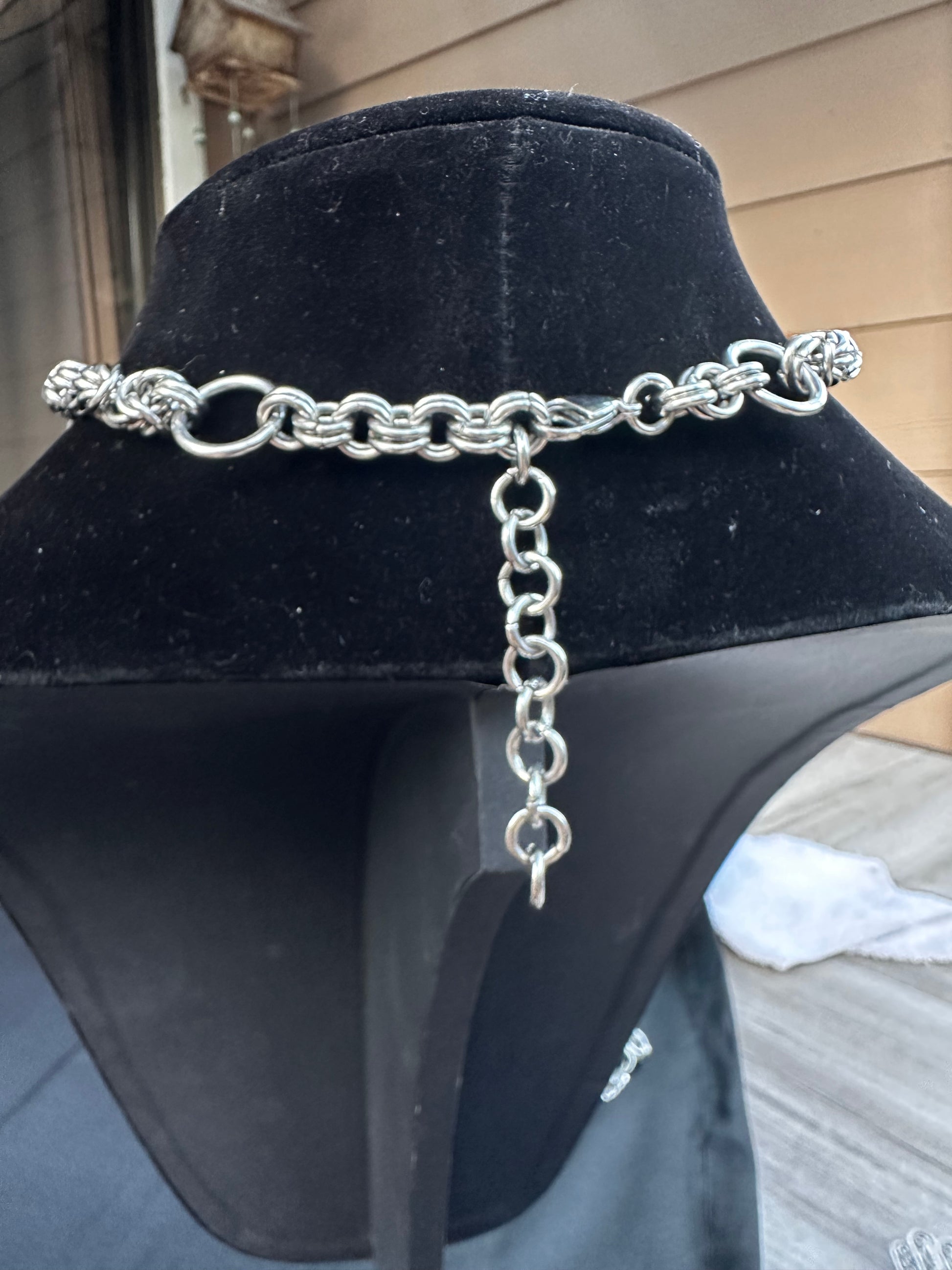Handmade chainmaile made fully with stainless steel jump rings, materials and finishings. Dog tag pendant is second hand but believed to be stainless steel. Has a film around the cross that adds extra style!